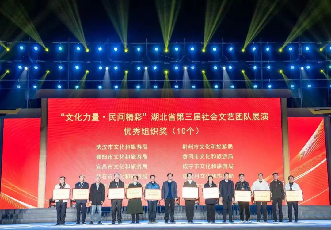▲頒發(fā)“文化力量·民間精彩”湖北省第三屆社會文藝團(tuán)隊(duì)展演優(yōu)秀組織獎(jiǎng)