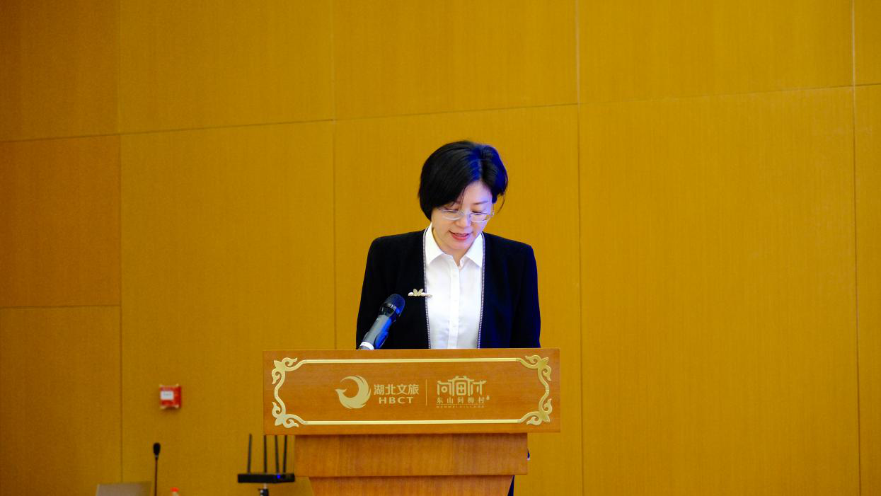 在景區(qū)問梅山莊宴會廳,采風(fēng)團參加了“東山問梅村旅游推介會”,黃梅縣文化和旅游局局長張惠致歡迎詞,介紹了黃梅縣人文特色和景區(qū)資源。