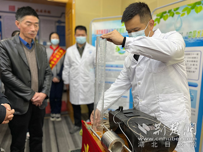 活動中,武漢水文水資源局志愿者以"長江大保護"為背景,介紹了關(guān)于長江流域生態(tài)環(huán)境保護的情況。在科普課堂環(huán)節(jié),工作人員通過水樣檢測等小實驗,為社區(qū)居民代表及學(xué)生們科普了常見水的分類和水質(zhì)化驗知識,通過現(xiàn)場演示自來水色度、硬度的檢測試驗,提高大家保護水環(huán)境必要性的意識。
