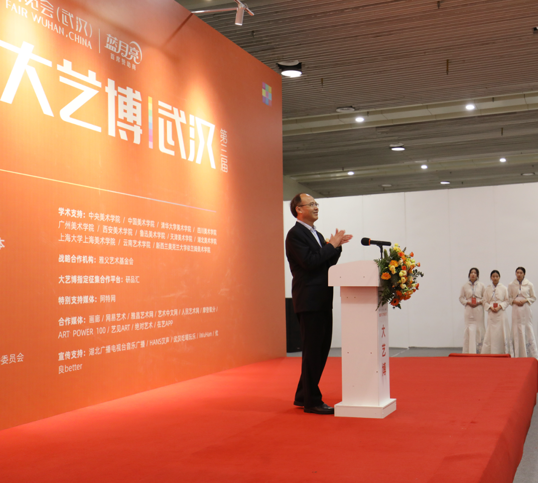 武漢大藝博文化藝術(shù)發(fā)展有限公司董事長李亦非代表大藝博組委會(huì)、主辦方致辭