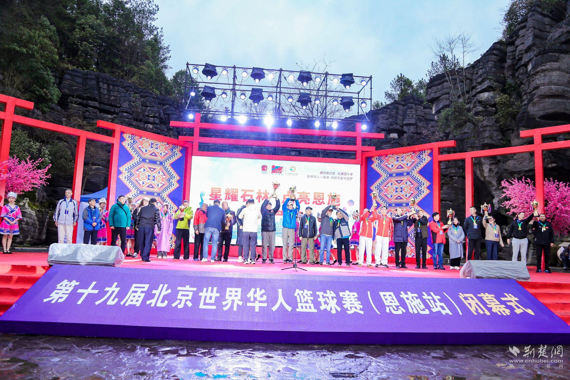 “靈秀湖北,養(yǎng)生福地,硒有恩施。希望各位今后能帶上自己的家人和朋友,常來做客,常來恩施,品雨露、看美景、吃美食、感受土苗風(fēng)情?!遍]幕式上,湖北奧昇文旅梭布埡石林景區(qū)總經(jīng)理李楠致辭。副市長高仁海致閉幕詞,裁判長陳斌宣布比賽成績?,F(xiàn)場為獲獎隊伍頒獎,恩施市人民政府副市長付定平宣布2023年第十九屆北京世界華人籃球賽(恩施站)圓滿落幕。