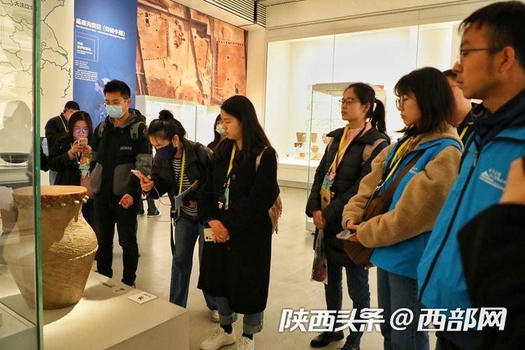 媒體團(tuán)記者在陜西考古博物館展廳內(nèi)了解展品背后的故事。
