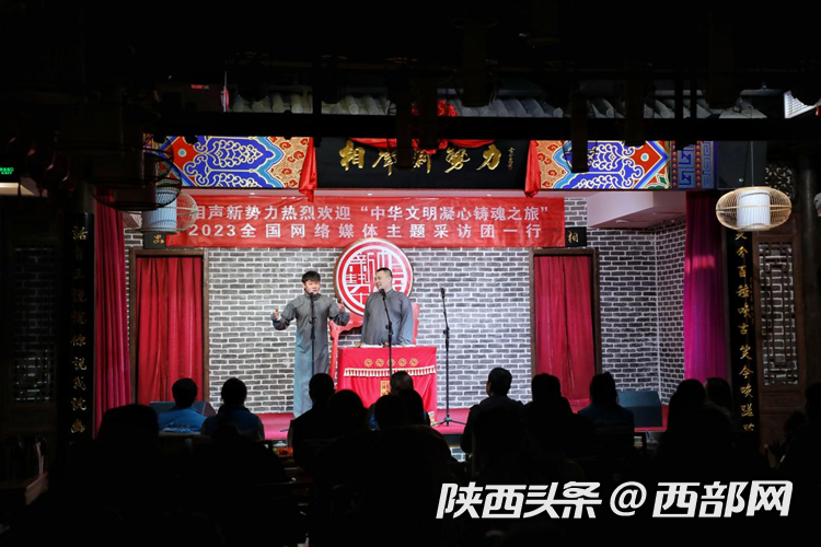 西部網(wǎng)訊(記者郭佳欣劉望)相聲新勢力就是陜西相聲里的新秀。4月4日,這個年輕曲藝廠牌的相聲演員們在舞臺上說學逗唱,為“中華文明凝心鑄魂之旅”2023全國網(wǎng)絡媒體主題采訪媒體團記者們帶來了一場有趣有料的視聽盛宴。