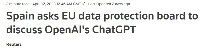 人民網(wǎng)訊 據(jù)路透社4月11日?qǐng)?bào)道,西班牙的數(shù)據(jù)保護(hù)機(jī)構(gòu)要求歐盟的隱私監(jiān)管機(jī)構(gòu)評(píng)估OpenAI公司開發(fā)的聊天機(jī)器人ChatGPT存在的隱私問題。西班牙要求將ChatGPT的相關(guān)問題納入歐洲數(shù)據(jù)保護(hù)委員會(huì)下次全體會(huì)議的議程中,以便于在歐盟通用數(shù)據(jù)保護(hù)條例的框架下實(shí)施協(xié)調(diào)行動(dòng)。(編譯:吳超嵐)