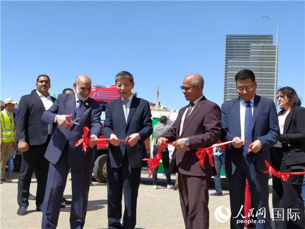 | 駐埃及大使廖力強(qiáng)、埃及中國(guó)商會(huì)會(huì)長(zhǎng)常偉才和埃及社會(huì)團(tuán)結(jié)部部長(zhǎng)代表薩米共同為活動(dòng)剪彩。人民網(wǎng)記者黃培昭 攝 |