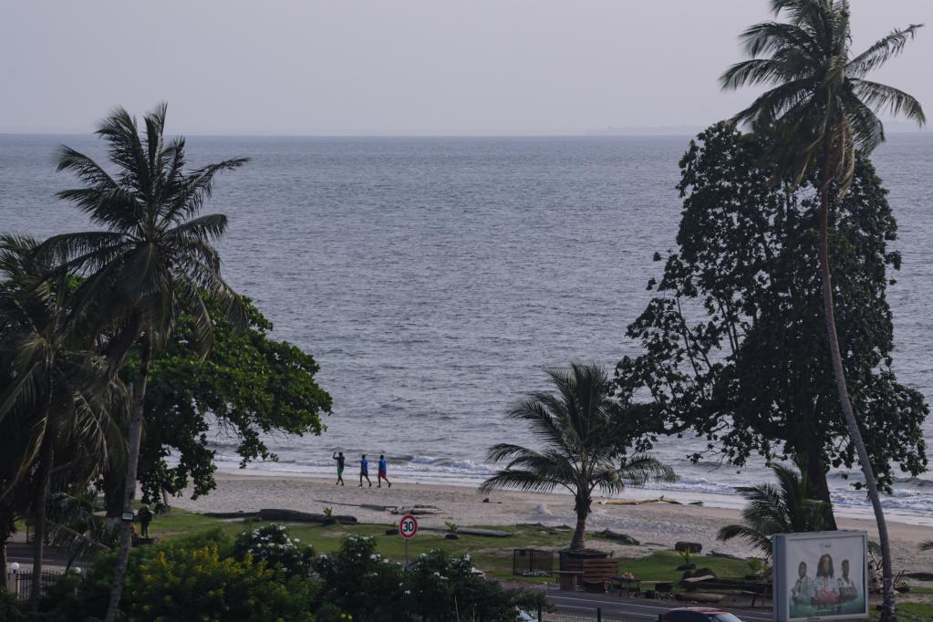 1月10日,在加蓬首都利伯維爾,人們走在海岸邊。(新華社記者韓旭攝)