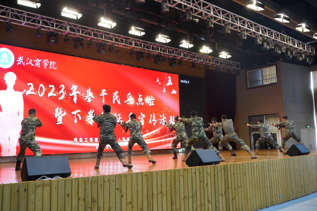 活動現(xiàn)場,來自武漢商學院的三十余名退役復(fù)學學生分別進行了持槍戰(zhàn)術(shù)、刺殺操、隊列等軍事技能展示。步伐整齊劃一,聲音鏗鏘有力,展示了新時代軍人過硬的軍事素養(yǎng),臺下掌聲不斷、 熱血澎湃。