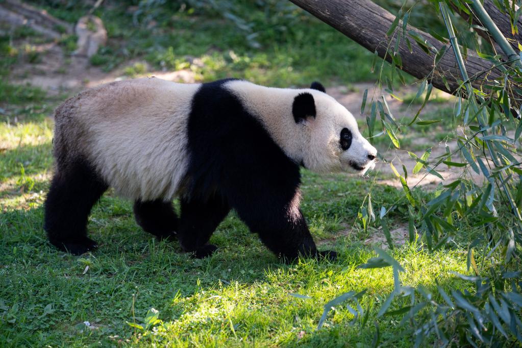 4月19日,在美國華盛頓史密森學(xué)會(huì)國家動(dòng)物園,大熊貓“小奇跡”在散步。新華社記者劉杰攝