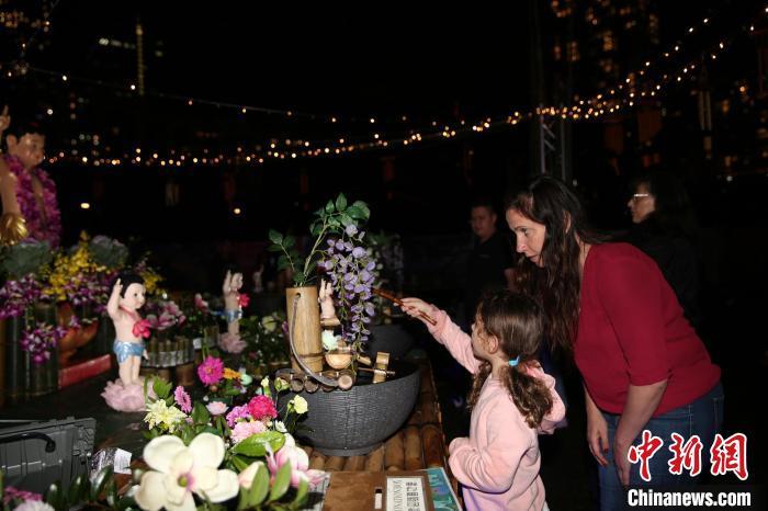 當(dāng)?shù)貢r間4月22日,慶祝釋迦牟尼佛誕生暨贊頌星云大師音樂會活動在悉尼達(dá)令港Tumbalong公園舉行。來自澳大利亞各宗教代表以及社區(qū)信眾逾千人參加了當(dāng)天的活動。圖為當(dāng)?shù)匕拇罄麃喢癖妳⒓印霸》鹌碓竻^(qū)”活動。中新社記者 顧時宏 攝