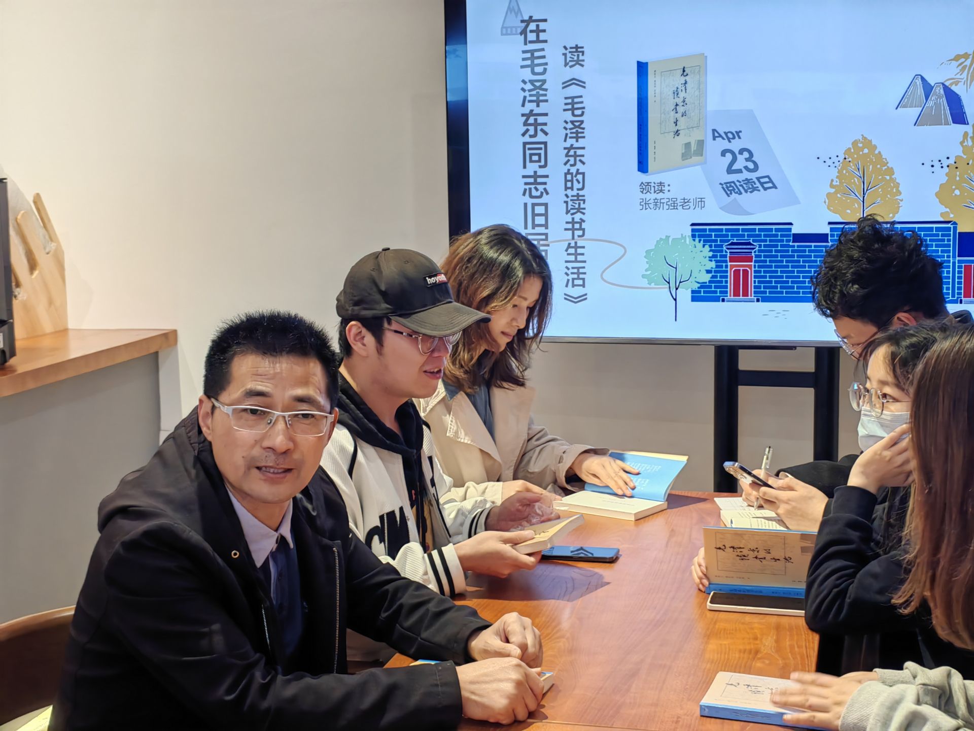 活動中,武漢市第十四中學(xué)高級歷史教師張新強與“紅巷青馬”志愿者們共同閱讀《毛澤東的讀書生活》并分享了自己的讀書體會。
