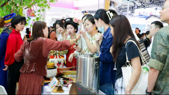 展館內(nèi)設(shè)置了迎賓區(qū)、非遺展區(qū)、特色農(nóng)產(chǎn)品區(qū)、美食品鑒區(qū)、茶藝展示區(qū)、VR科技體驗(yàn)區(qū),多形式多樣化向所有參展嘉賓展示了恩施豐富的旅游資源和深厚的傳統(tǒng)民族文化。