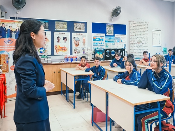 醫(yī)療隊(duì)隊(duì)長(zhǎng)董曉燕主講,她以中醫(yī)飲食文化為主題,向?qū)W生深入淺出地講解飲食與健康的關(guān)系、強(qiáng)調(diào)均衡飲食的重要性。她簡(jiǎn)單地介紹了生活中常見的因時(shí)、因季、因人、因顏色而異的飲食文化,通過(guò)大量圖片讓學(xué)生們更直觀地了解中醫(yī)藥文化的魅力,并引導(dǎo)學(xué)生們養(yǎng)成健康的飲食習(xí)慣且堅(jiān)持下去,現(xiàn)場(chǎng)課堂氣氛活躍。
