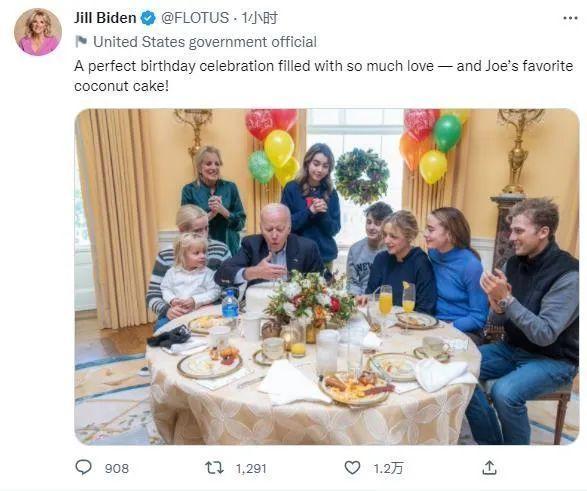 20日,拜登與家人慶祝80歲生日。圖片來源:美國(guó)第一夫人吉爾·拜登社交媒體賬號(hào)截圖