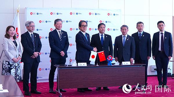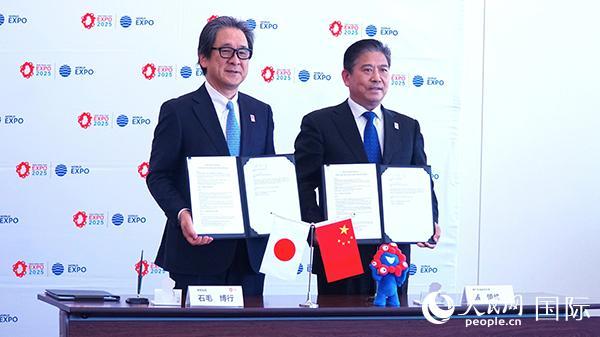 | 2025年日本大阪世博會(huì)中國(guó)館政府總代表、中國(guó)貿(mào)促會(huì)副會(huì)長(zhǎng)張慎峰(右)與2025年日本世博會(huì)協(xié)會(huì)事務(wù)總長(zhǎng)石毛博行在參展合同上簽字。人民網(wǎng) 蔣曉辰攝 |