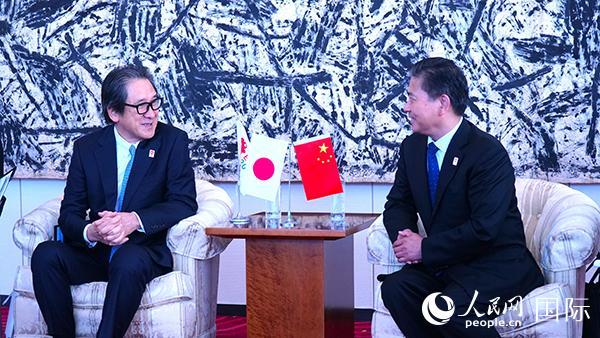 | 張慎峰副會(huì)長(zhǎng)與石毛博行事務(wù)總長(zhǎng)進(jìn)行友好會(huì)談。人民網(wǎng) 蔣曉辰攝 |