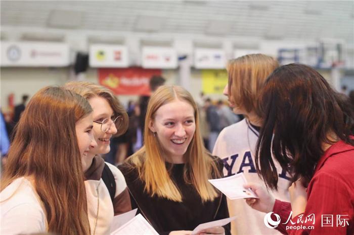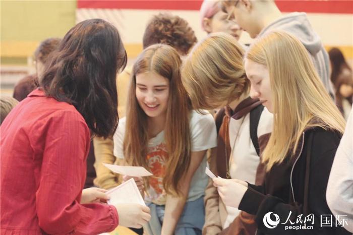 學(xué)生們現(xiàn)場學(xué)習(xí)中文問候語。人民網(wǎng)記者 禹麗敏攝