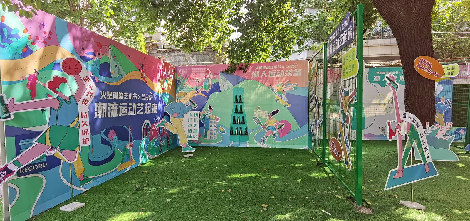 本屆火星潮流藝術(shù)節(jié)攜手藍(lán)月亮特設(shè)“潮流運(yùn)動(dòng)藝起來”體驗(yàn)區(qū),以潮流藝術(shù)的形式傳遞時(shí)尚健康的運(yùn)動(dòng)態(tài)度和潔凈運(yùn)動(dòng)的生活方式。體驗(yàn)區(qū)現(xiàn)場有插畫藝術(shù)家特別創(chuàng)作的潮流運(yùn)動(dòng)場景作品,觀眾不僅可以與藝術(shù)家作品拍照打卡,還能通過貼紙共創(chuàng)表達(dá)運(yùn)動(dòng)態(tài)度。同時(shí),妙趣橫生的飛盤挑戰(zhàn)活動(dòng)更令人體驗(yàn)到運(yùn)動(dòng)的時(shí)尚與快樂,讓觀眾充分感受藍(lán)月亮帶來的新奇科技和暢爽樂趣。