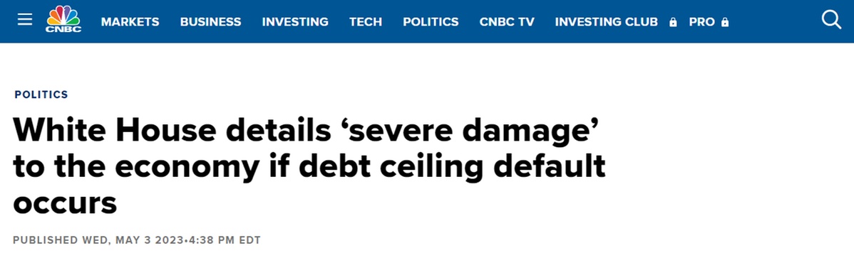 美國(guó)白宮周三發(fā)布了一份評(píng)估文件。其中說(shuō)明了債務(wù)違約將帶來(lái)的后果。