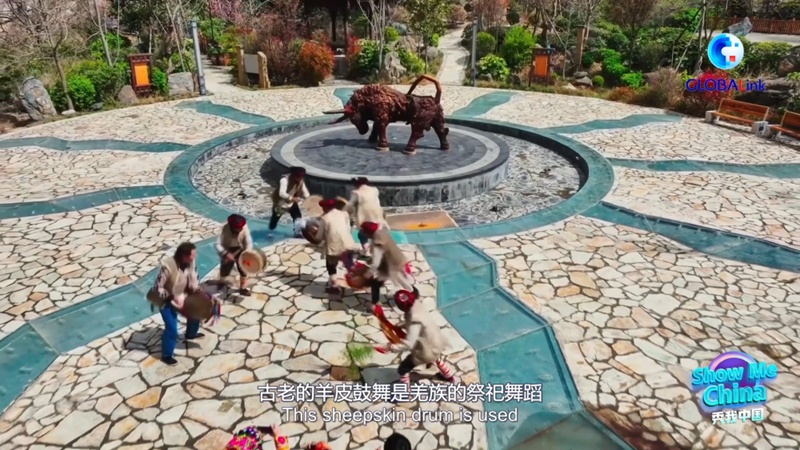 “老譚”與羌族長(zhǎng)老跳起羊皮鼓舞