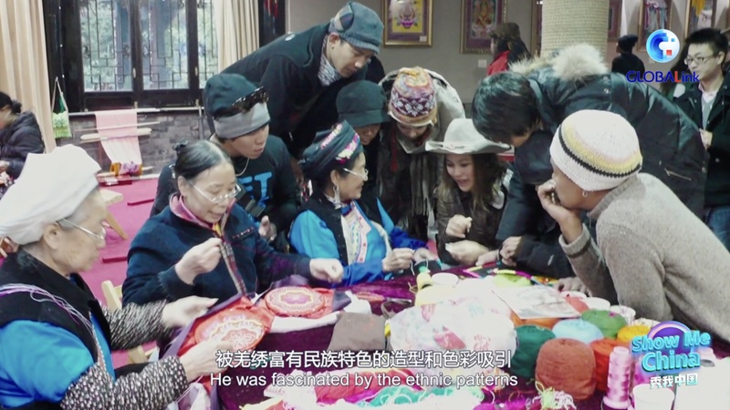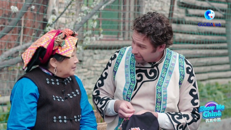 美國(guó)專(zhuān)家“老譚”嘗試學(xué)習(xí)羌繡