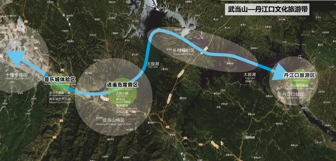 武當(dāng)山—丹江口文化旅游帶全長75公里,規(guī)劃面積30平方公里,整合了武當(dāng)山太極湖旅游度假區(qū)的核心資源、丹江口和太極五大系列文旅項(xiàng)目集群。重點(diǎn)建設(shè)逍遙島度假區(qū)、丹江口旅游區(qū)和音樂城體驗(yàn)區(qū)三大片區(qū)。項(xiàng)目計(jì)劃總投資500億元,其中一期投資300億元,建設(shè)周期5年。