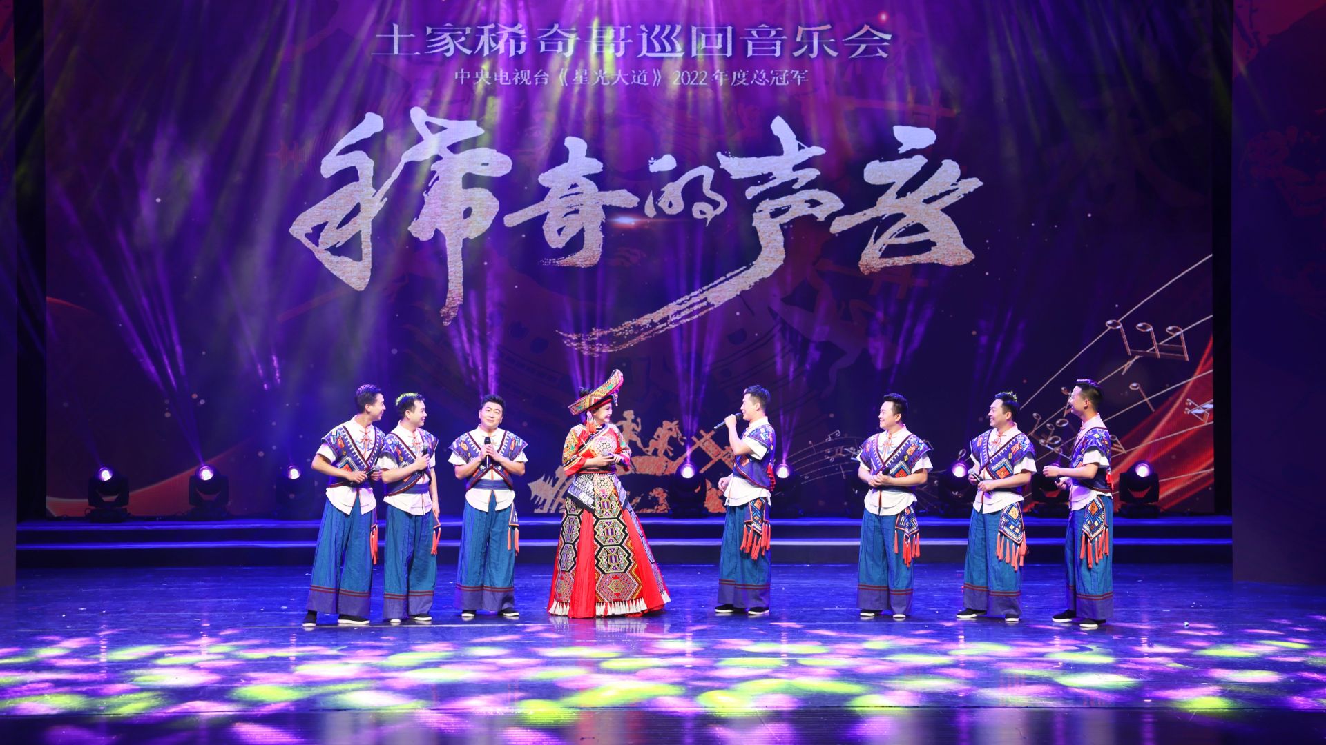 土家稀奇哥組合由蔡呈、易漢章、李順洪、楊章暉、梁曉斌、李開文、劉洪波等七位來自恩施大山深處的土家小伙組成,他們能歌善舞,藝術(shù)風(fēng)格鮮明,是中央電視臺(tái)《星光大道》開播19年來湖北選手奪得的第一個(gè)年度總冠軍,同時(shí)登上了2023年中央電視臺(tái)春節(jié)聯(lián)歡晚會(huì)的舞臺(tái)。