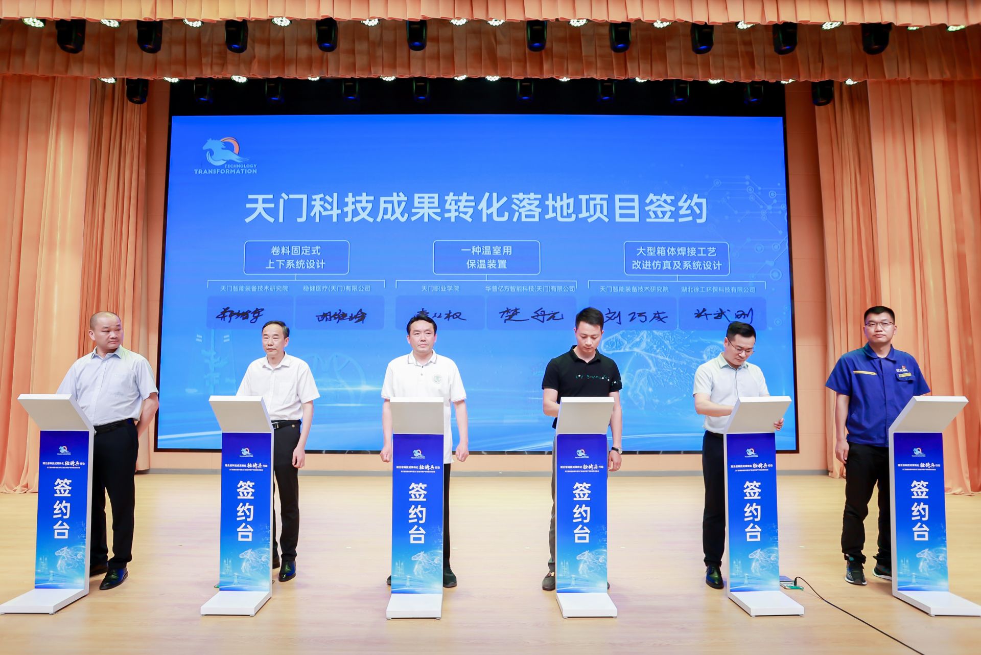 活動現(xiàn)場,天門智能裝備技術(shù)研究院、天門職業(yè)學(xué)院與穩(wěn)健醫(yī)療、天瑞電子、華普億方智能等企業(yè)的一批重大項目在現(xiàn)場成功簽約;天門職業(yè)學(xué)院與天門紡織機(jī)械、芯創(chuàng)(天門)電子、科瑞半導(dǎo)體等10家進(jìn)行了企業(yè)“雙掛牌”授牌儀式;來自華中科技大學(xué)、湖北工業(yè)大學(xué)、江漢大學(xué)、湖北科技學(xué)院以及天門智能裝備技術(shù)產(chǎn)業(yè)研究院的一批科研成果在現(xiàn)場進(jìn)行了推介路演。