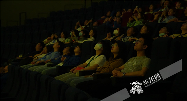 記者們在球幕影院觀看大足石刻8k紀(jì)錄片。華龍網(wǎng)-新重慶客戶端 劉岱松 攝