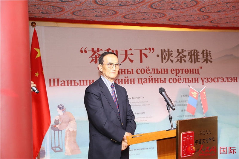 李峙在致辭中表示,今天推出“茶和天下”陜茶雅集活動,包括陜西陜茶文化展、茶藝品鑒、陜西文化和旅游推介會、茶藝表演和古箏演奏等內(nèi)容,目的是推動廣大蒙古國民眾進(jìn)一步深入了解中國茶文化,了解茶葉故鄉(xiāng)的風(fēng)土人情,讓更多的人知茶、愛茶,傳遞友情,共品茶香茶韻,共享美好生活。