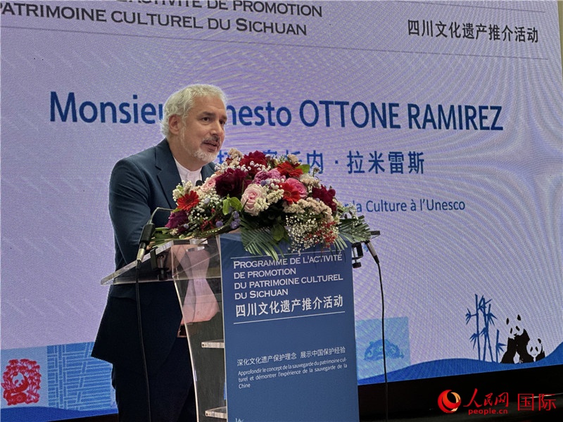 | 聯(lián)合國教科文組織文化助理總干事埃內(nèi)斯托·奧托內(nèi)·拉米雷斯致辭。人民網(wǎng)記者 劉玲玲攝 |