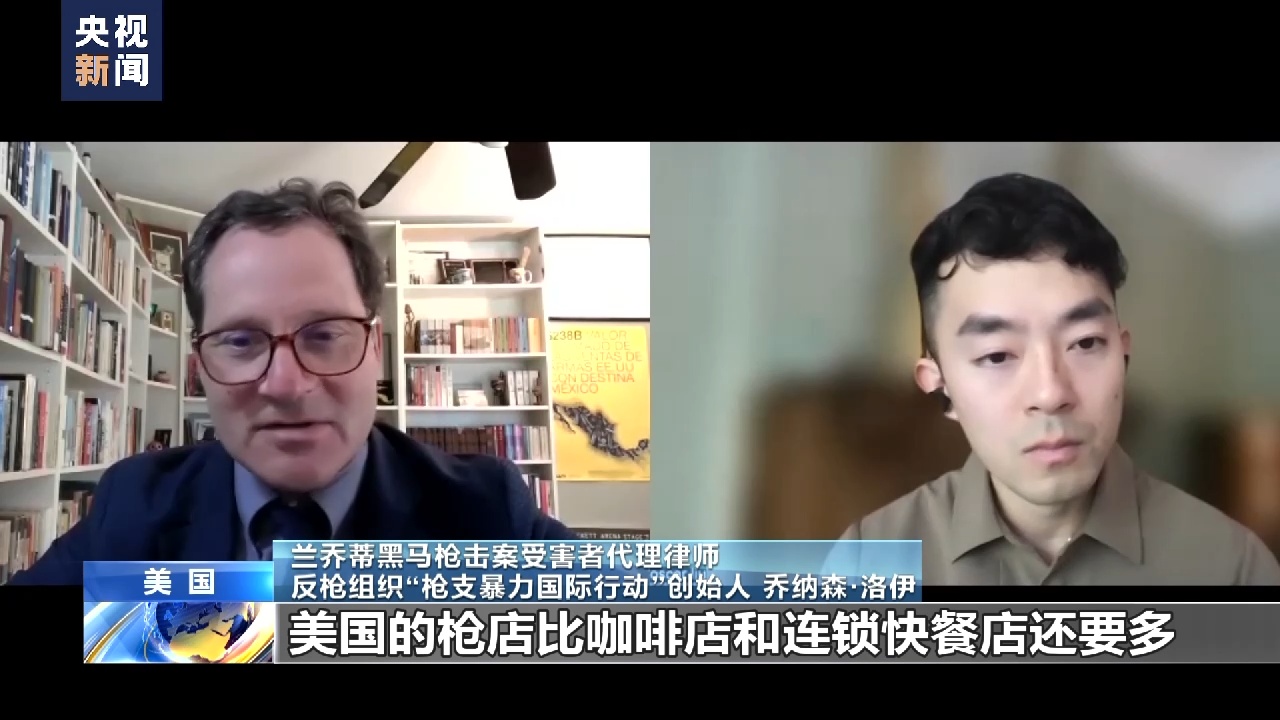 蘭喬蒂黑馬槍擊案受害者代理律師、反槍組織“槍支暴力國(guó)際行動(dòng)”創(chuàng)始人 喬納森·洛伊:兇手本來不允許購(gòu)買和擁有槍支,因?yàn)樗蟹缸镉涗洠麖摹坝撵`槍”賣家那里獲得槍支,從而瘋狂殺人。