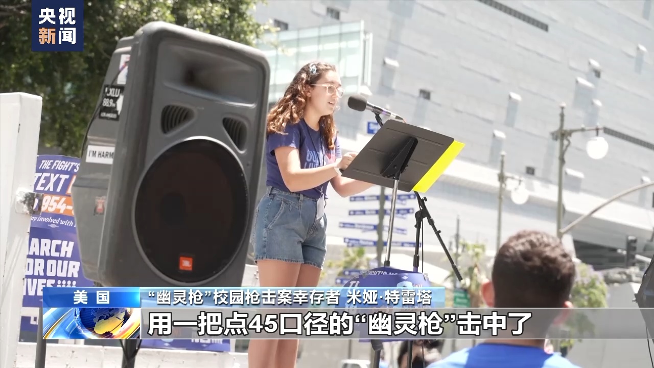 “幽靈槍”校園槍擊案幸存者 米婭·特雷塔:當(dāng)時(shí)我們正在談笑,突然聽見“砰”的一聲槍響,當(dāng)?shù)诙晿屄曧懫饡r(shí)我已經(jīng)跌倒在地上。我爬起來,跑進(jìn)教室里,同學(xué)和老師急忙為我止血,我被一名不認(rèn)識(shí)的同校學(xué)生,同時(shí)也是一個(gè)未成年人,用一把點(diǎn)45口徑的“幽靈槍”擊中了。