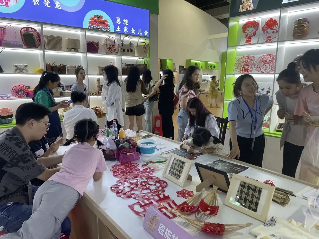 “非遺集市”展區(qū),恩施市主題館展館內(nèi),項目多彩、展品豐富。恩施木雕、恩施草編、恩施剪紙、恩施竹編、恩施儺面具制作技藝、油茶湯制作技藝、漆器髹飾技藝、恩施玉露制作技藝、王氏丸劑傳統(tǒng)制作技藝、竹馬、恩施地鴿子、恩施莊氏正骨法等十二類非遺項目以及非遺文創(chuàng)打花鋪參加了本次活動的展覽展示展銷,同時還進(jìn)行了恩施市特色文藝節(jié)目展演,充分展示了近年來恩施市非遺保護(hù)及傳承工作的顯著成果。