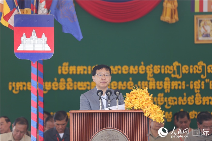 中國(guó)駐柬埔寨大使王文天在開工儀式上致辭。人民網(wǎng)記者 趙益普攝