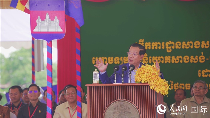 柬埔寨首相洪森參加金巴高速項(xiàng)目開工儀式。人民網(wǎng)記者 趙益普攝