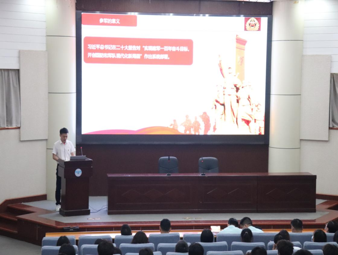 會議詳細介紹了大學(xué)生入伍的基本條件、報名參軍的基本流程以及大學(xué)生入伍優(yōu)待政策,對大學(xué)生參軍入伍的政治榮譽、學(xué)業(yè)保障、經(jīng)濟補貼、就業(yè)創(chuàng)業(yè)、部隊發(fā)展、考公考編等方面進行重點解讀,讓同學(xué)們對國家、省、市、學(xué)校的優(yōu)惠政策熟知于心,鼓勵廣大青年積極參軍入伍,報效國家。