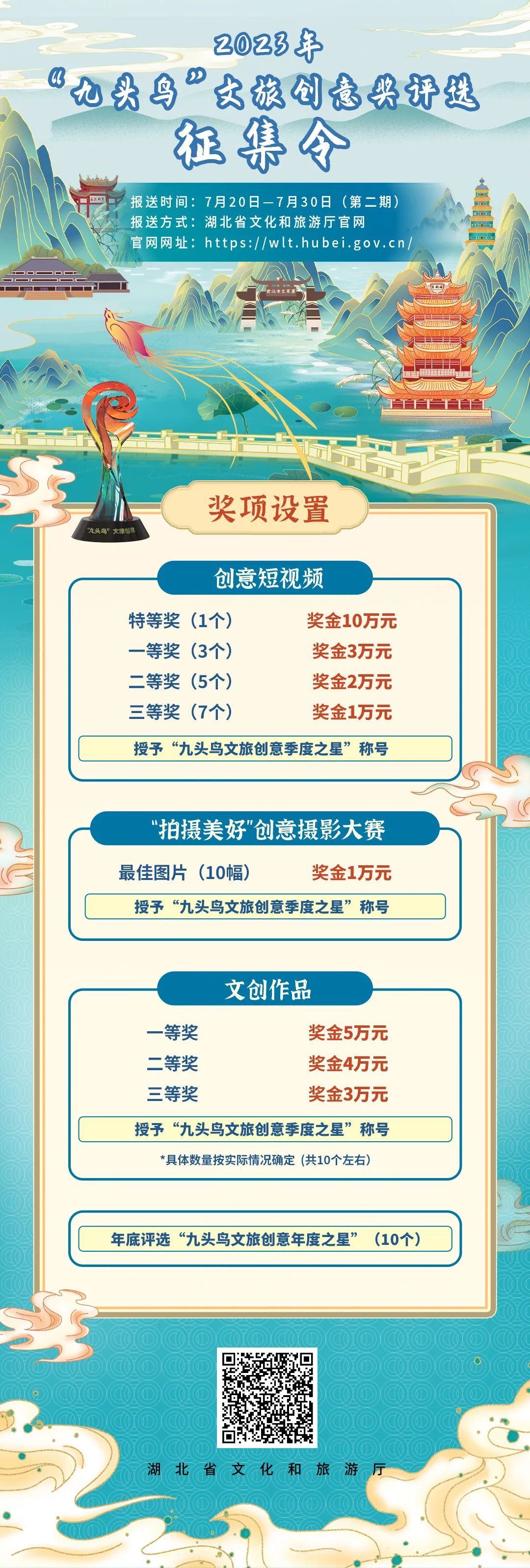 荊楚網(wǎng)(湖北日報網(wǎng))訊(通訊員 鄂文旅)6月22日,從湖北省文化和旅游廳發(fā)布消息,為加快推進文旅恢復發(fā)展,持續(xù)打造文旅創(chuàng)意品牌,廣泛匯聚文旅創(chuàng)意人才,湖北省文化和旅游廳舉辦的“九頭鳥”文旅創(chuàng)意獎評選活動今年再度啟動。