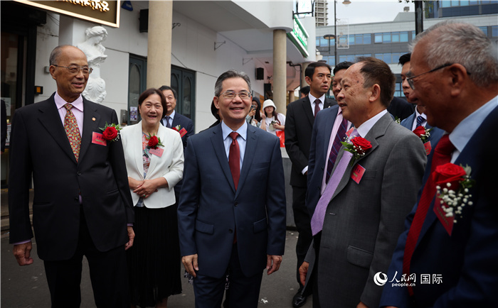 | 鄭澤光大使在當(dāng)?shù)貎S領(lǐng)的陪同下走訪僑社。人民網(wǎng)記者 邢雪攝 |