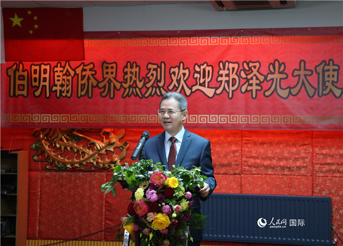 | 中國(guó)駐英國(guó)大使鄭澤光提出希望伯明翰地區(qū)的僑胞及各個(gè)社團(tuán)能夠繼續(xù)做中華文化的傳播者、中國(guó)故事的講述者、互利合作的推動(dòng)者、民間友誼的促進(jìn)者。人民網(wǎng)記者 邢雪攝 |