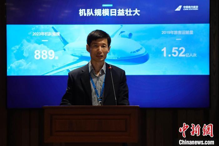南航韓國(guó)營(yíng)銷中心銷售經(jīng)理劉向軍介紹南航特色產(chǎn)品及服務(wù)。 劉旭 攝