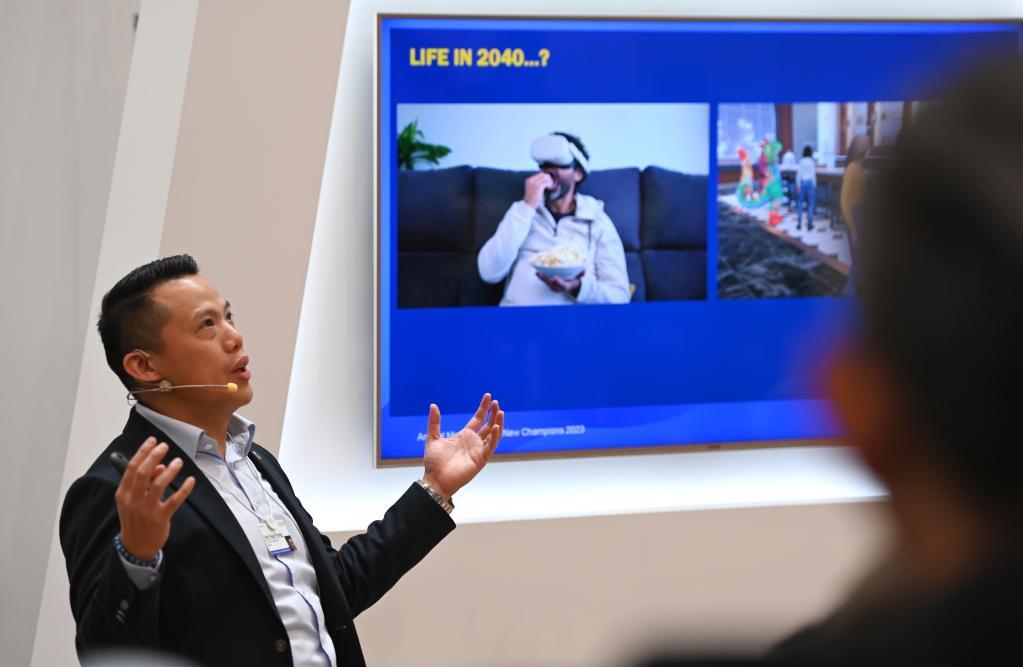 新加坡Group ONE Holdings聯(lián)合創(chuàng)始人兼集團總裁鄭華峰在“2040年的生活”對話會上發(fā)言。新華社記者趙子碩 攝