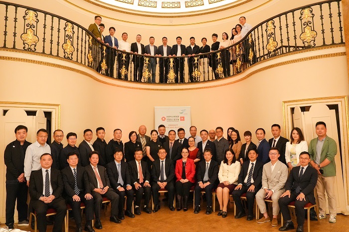浙江代表團(tuán)與參加座談會(huì)的當(dāng)?shù)貎S領(lǐng)及企業(yè)代表合影留念。英國(guó)浙江會(huì)供圖