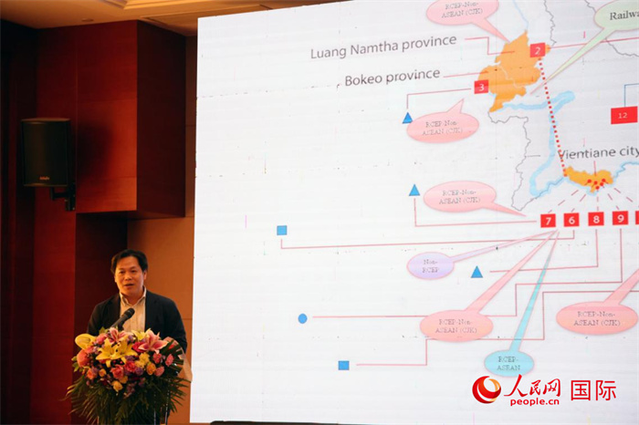 老撾計劃與投資部發(fā)展研究院院長史提羅斯·拉斯福尼在活動現(xiàn)場發(fā)言。人民網(wǎng)記者 楊一攝