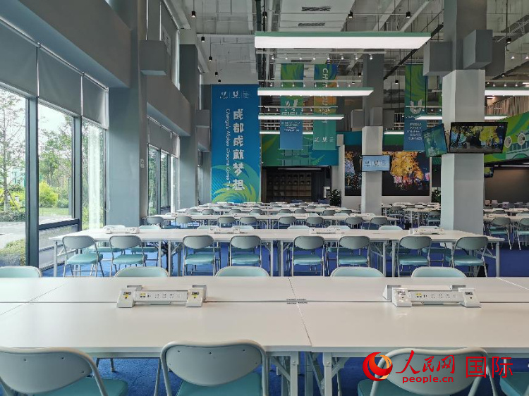 | 成都大運(yùn)會(huì)主媒體中心新聞發(fā)布廳“熊貓廳”。人民網(wǎng)記者 符園園攝 |