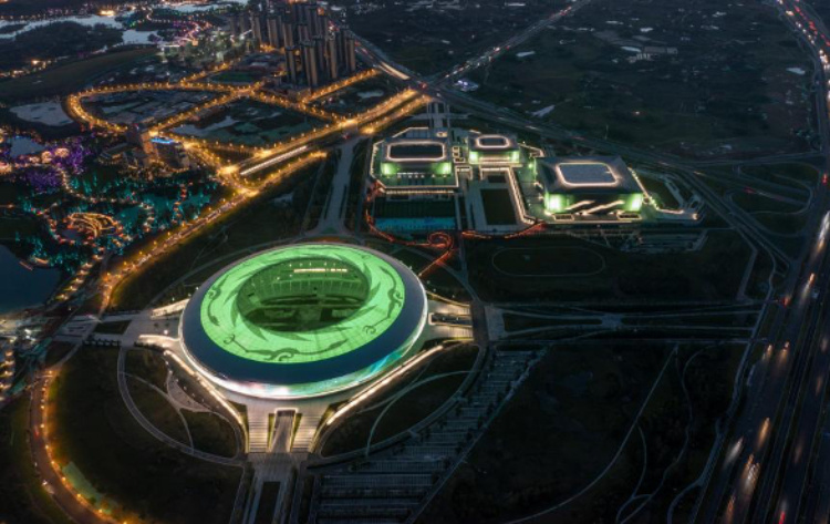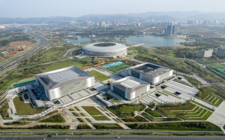 東安湖體育公園為成都大運會的新建場館,總建筑面積約32萬平方米,占地5000畝,由“一場三館”組成,包含 4 萬座的主體育場、1.8 萬座的多功能體育館、4500 座的游泳跳水館和小球館。比賽期間,東安湖體育公園將承擔(dān)體操、游泳等重要項目賽事。