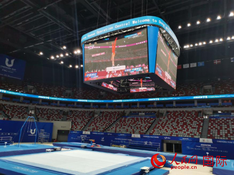 | 圖為東安湖體育公園小球館內(nèi)部。大運會期間,小球館將主要作為體操項目的訓(xùn)練場地。人民網(wǎng)記者 符園園攝 |