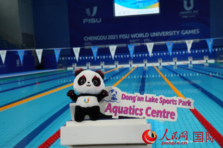 | 圖為擺放在東安湖體育公園游泳跳水館的成都大運會吉祥物“蓉寶” 人民網(wǎng) 周琳佳攝 |