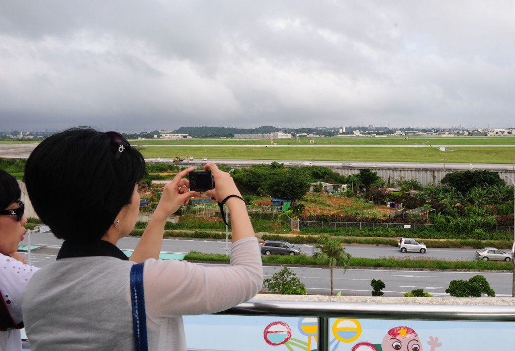 2010年5月18日,一名女子在日本沖繩縣嘉手納町遠(yuǎn)觀美空軍駐沖繩嘉手納基地。新華社記者季春鵬攝