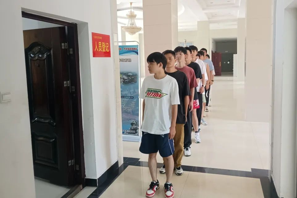 體檢現(xiàn)場,在征兵工作人員的引導下,應征青年們整齊列隊,有序進行五官、內(nèi)外科、彩超、心理測試等項目檢查,醫(yī)務人員各司其職,嚴格按照體檢標準要求并做好登記。