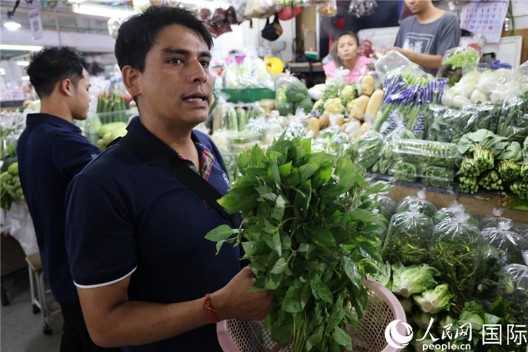 | 7月19日,泰國(guó)曼谷藍(lán)象餐廳員工向參加活動(dòng)的多國(guó)代表介紹如何挑選新鮮蔬菜。 人民網(wǎng)記者 張矜若攝 |